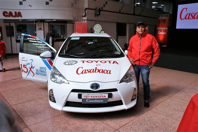 Este martes 11 de julio, Casabaca y Toyota del Ecuador, entregaron un Prius C Sport 2017 al ganador del sorteo de la carrera Últimas Noticias 15K 2017, en la ciudad de Quito. Oscar Molina, oriundo del cantón Mejía, provincia de Pichincha, resultó ser el ganador; quien tras cinco años de participación en esta prestigiosa competencia internacional recibió esta grata sorpresa. De esta manera, ambas empresas cumplen con una tradición de más de 10 años, la cual da la oportunidad a todos los participantes que llegan a la meta, y entregan sus chips, de hacerse acreedores a un Toyota cero kilómetros.