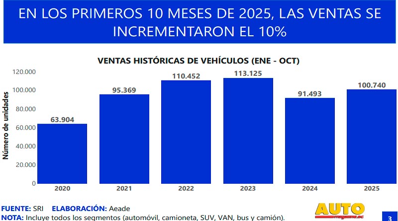 Esta evolución positiva refleja una mayor confianza del consumidor, la mejora en las condiciones de financiamiento y un entorno macroeconómico del país más estable, factores que han impulsado la adquisición de bienes de larga duración como los vehículos, indicó Genaro Baldeón, presidente Ejecutivo de la Asociación de Empresas Automotrices del Ecuador, AEADE.