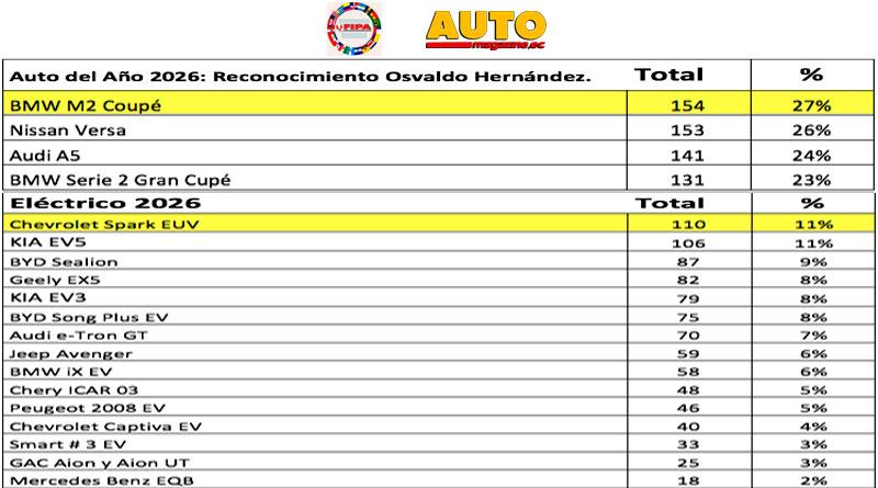 - Reconocimiento ‘Osvaldo Hernández’, para el Auto del Año FIPA 2026: ganador BMW M2 Coupé.